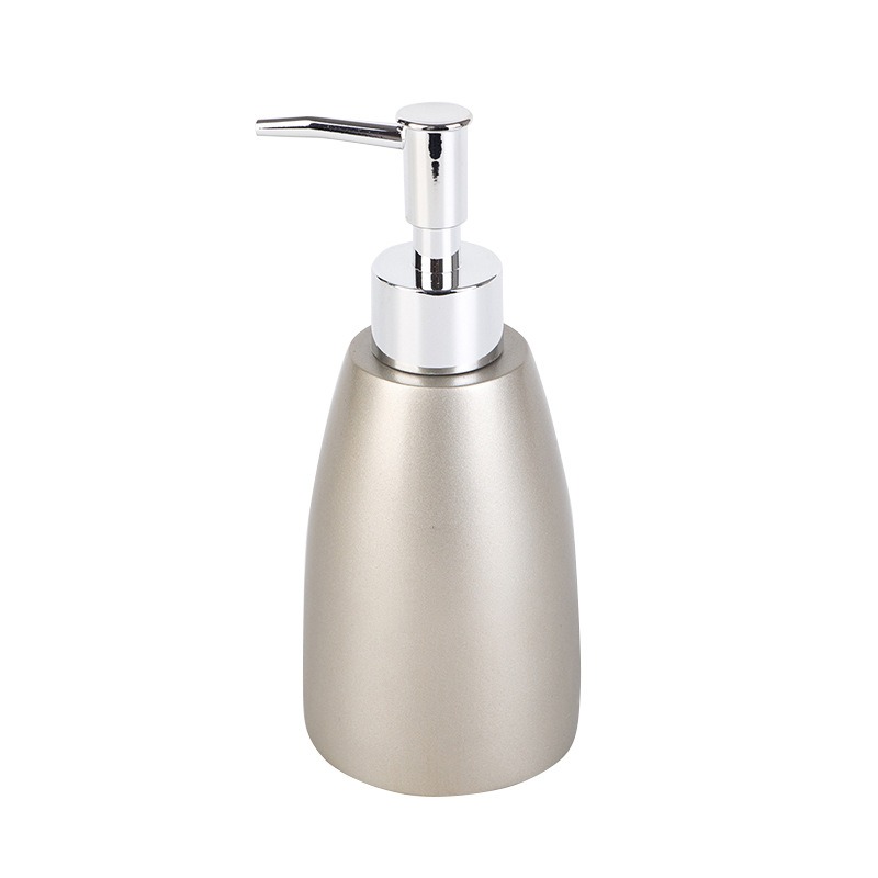 Thiết kế của bình đựng dầu gội, sữa tắm Resin 03 mang lại vẻ đẹp hiện đại và tinh tế cho không gian phòng tắm. Bình có màu vàng kim loại mờ, tạo nên vẻ sang trọng và đẳng cấp. Phần thân bình có hình dạng thuôn nhọn mượt mà, tạo cảm giác thanh thoát và tinh tế. Nắp bơm được làm từ chất liệu sáng bóng, tạo sự hài hòa và điểm nhấn cho sản phẩm. Sự kết hợp giữa màu vàng kim loại và bạc tạo nên một tổng thể hiện đại, phù hợp với không gian nội thất đương đại.