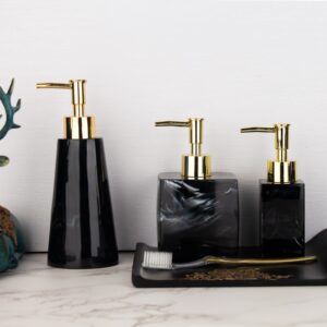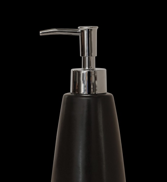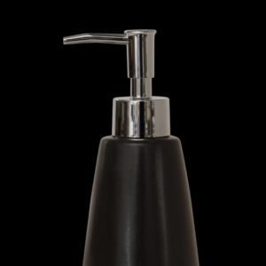 Thiết kế bình đựng hình trụ, thon dần từ dưới lên trên của bình đựng dầu gội, sữa tắm Resin 02 mang lại vẻ đẹp hiện đại và tinh tế cho không gian phòng tắm. Bình có màu đen với họa tiết vân đá, tạo nên vẻ sang trọng và đẳng cấp. Nắp bơm màu bạc làm điểm nhấn, tạo nên sự hài hòa và thẩm mỹ cho sản phẩm. Các điểm bo ở góc cạnh, sắc sảo không chỉ tạo nên vẻ đẹp thẩm mỹ mà còn giúp bình đứng vững chắc, không bị đổ ngã trong quá trình sử dụng.